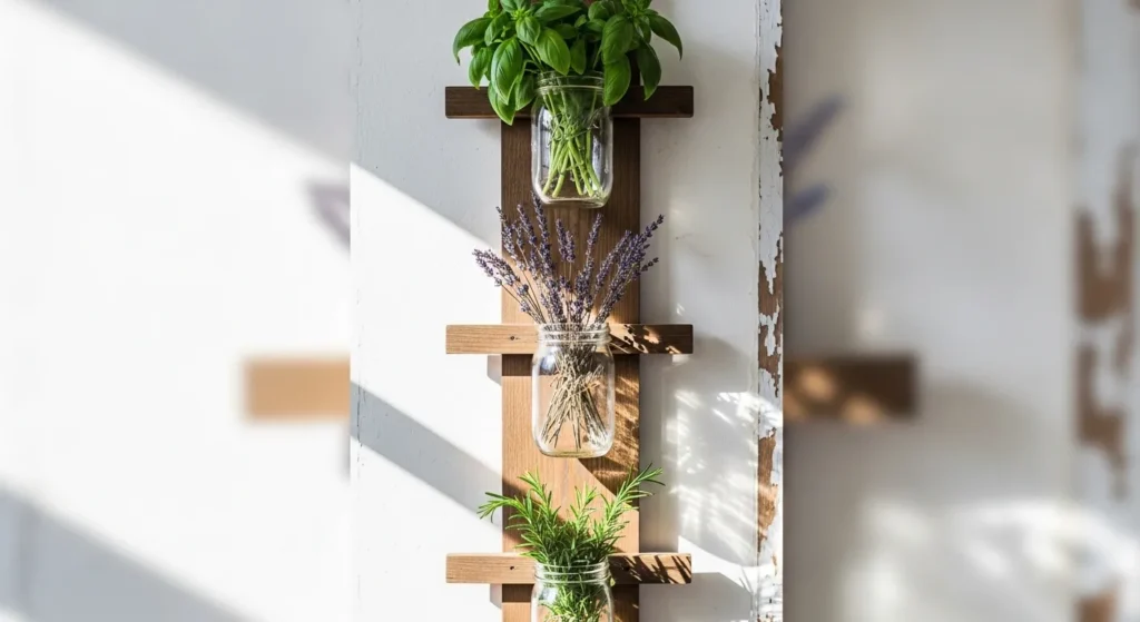 Combine with hooks for small tools or plant markers. This eco-friendly vertical gardening solution is functional, decorative, and ideal for compact spaces, giving a Pinterest-worthy rustic touch.
