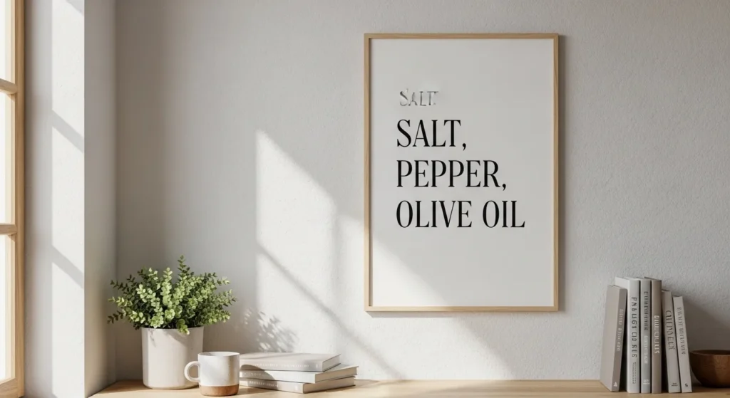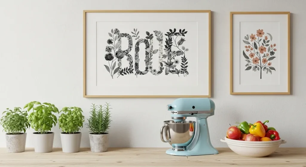 Typography prints highlighting favorite ingredients or kitchen essentials combine style and culinary inspiration. Bold fonts or elegant calligraphy can create a playful or sophisticated feel depending on your kitchen’s theme.