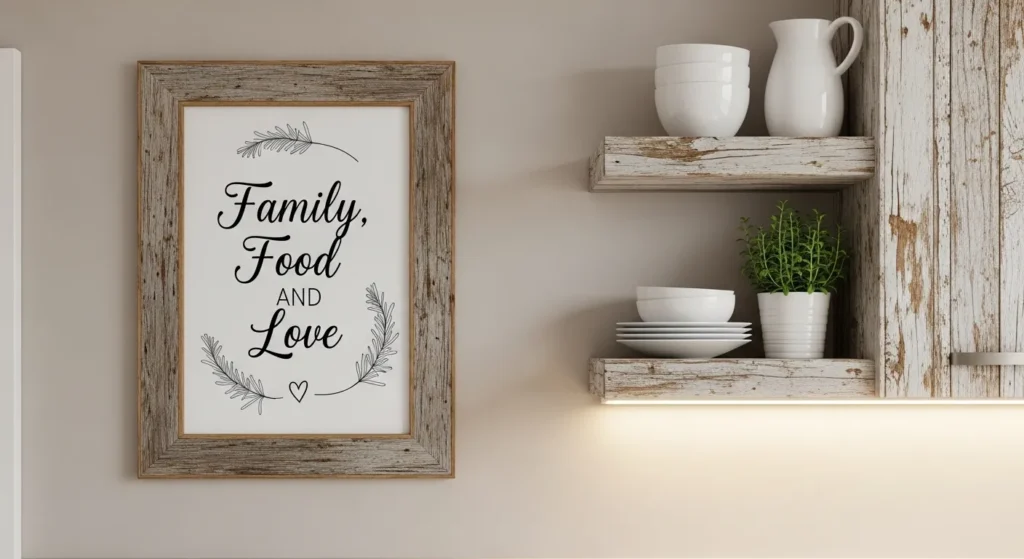 Displaying personalized quotes adds warmth and personality. Choose phrases about family, cooking, or mealtime traditions to make your kitchen feel welcoming and uniquely yours.